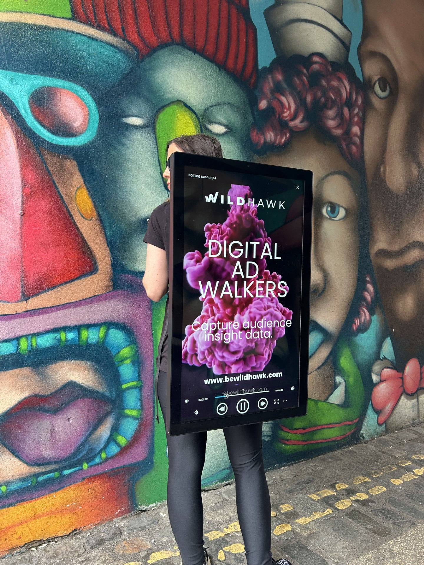 As part of a broader team, you will be required to carry digital advertising screens as well as engaging in human observation and analysis of social and cultural environments where screens are in operation.